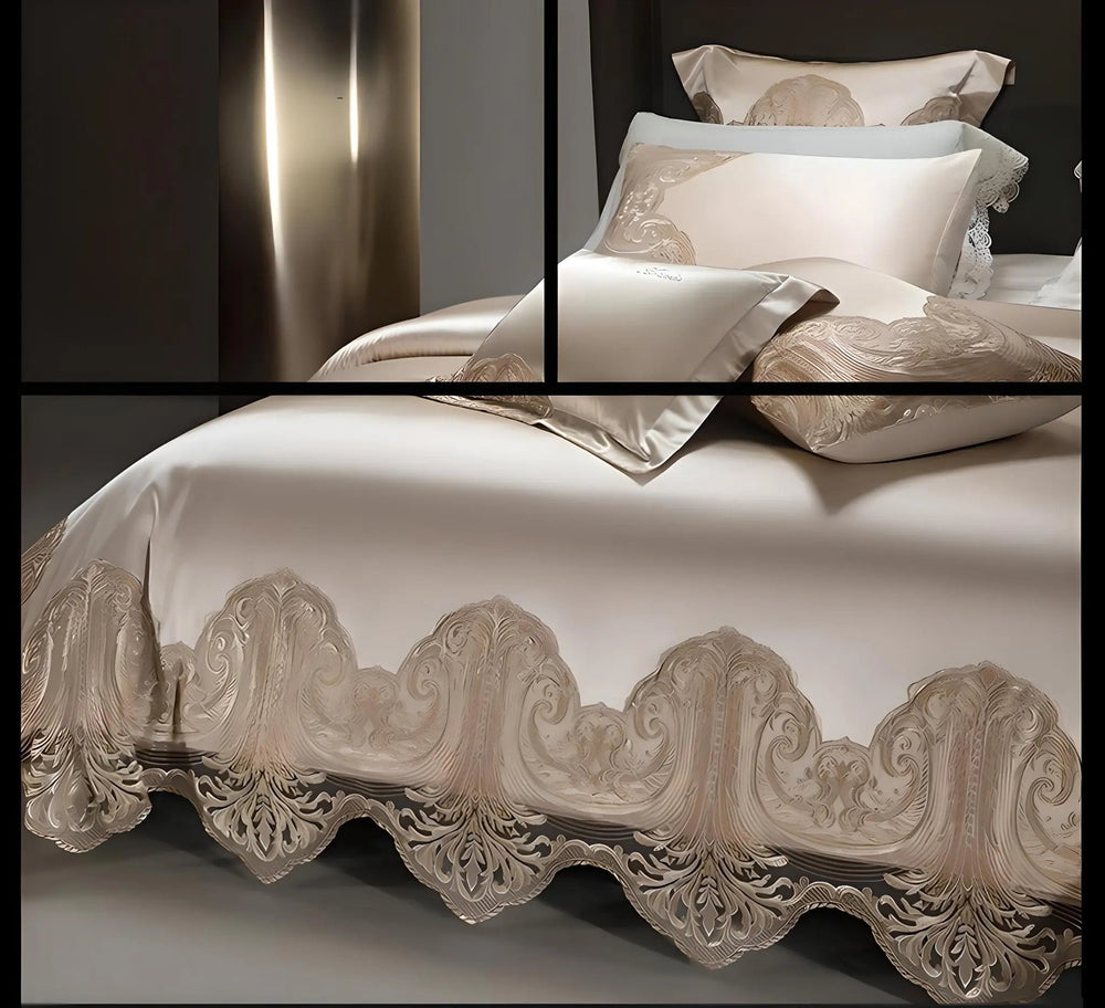 Luxury Pure Cotton Lace Bedding Set - Four-Piece European Style - Julia M LifeStyles
