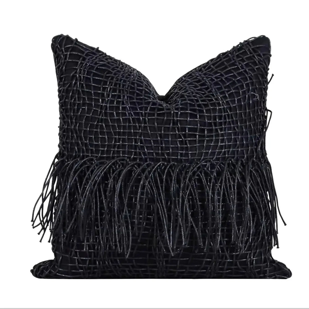 Modern Light Luxury Black and Gray Abstract Tassel Patchwork Minimalist Sofa Living Room Home Pillow Bedside Cushion Pillowcase - Julia M LifeStyles
