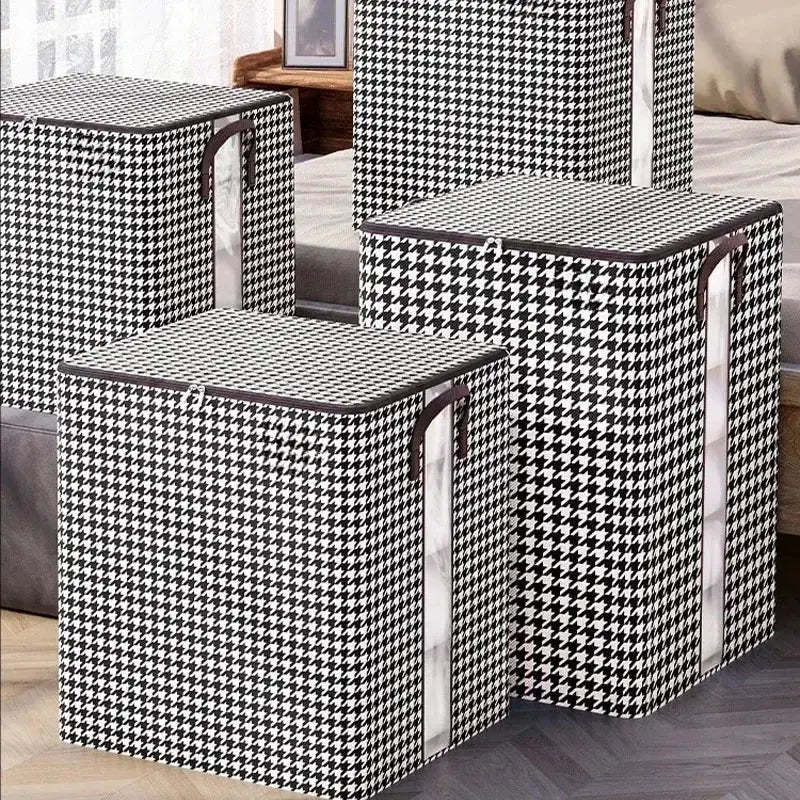 Introducing the Nonwoven Quilt Cotton Storage Bag—the ultimate answer to your home organization struggles. This large-capacity organizer is designed to keep your clothes, quilts, and other household essentials neatly packed and easily accessible. With a modern and stylish houndstooth pattern, this storage bag complements any home décor while tackling storage headaches.