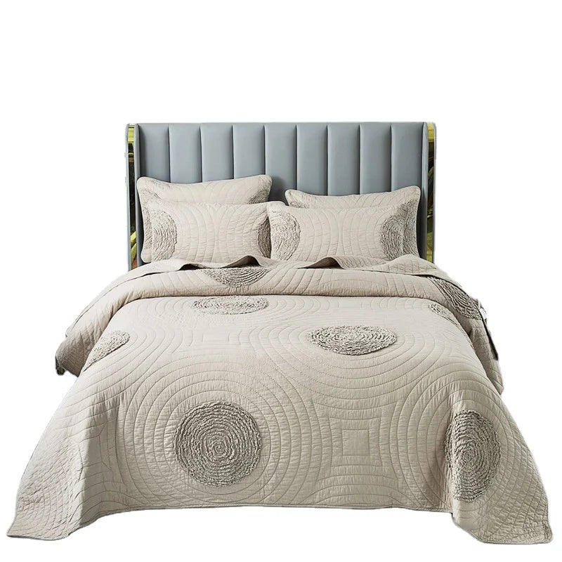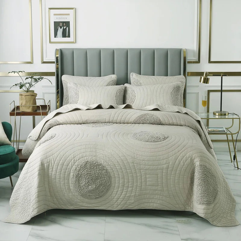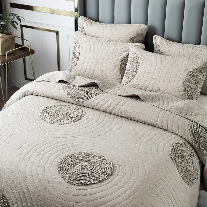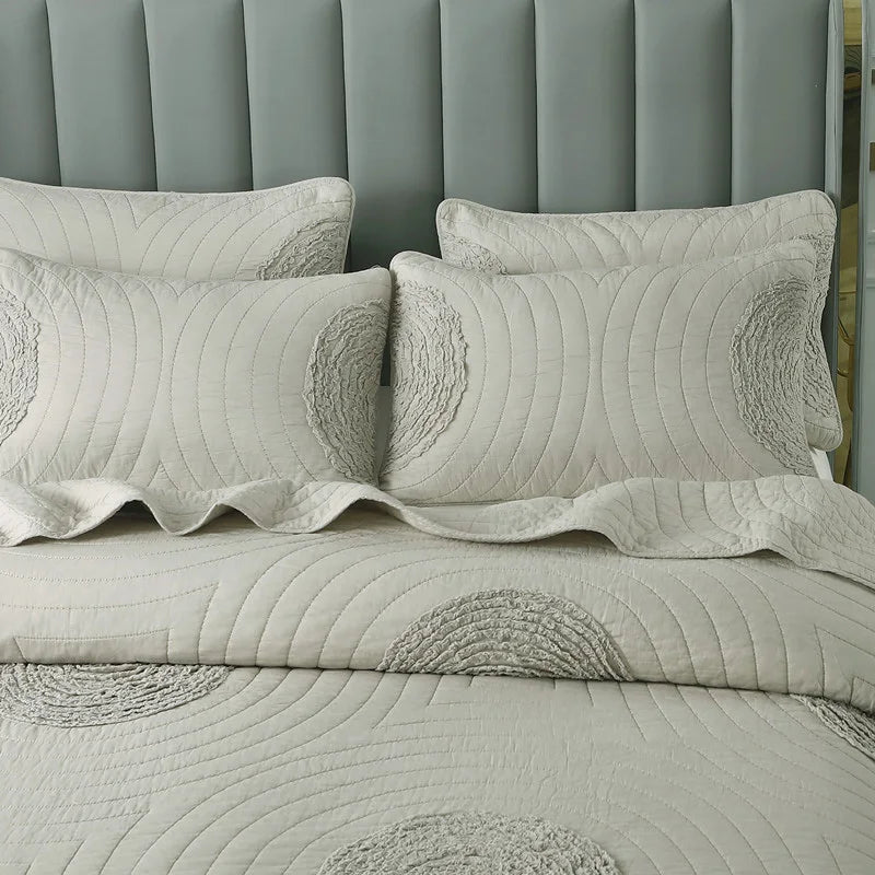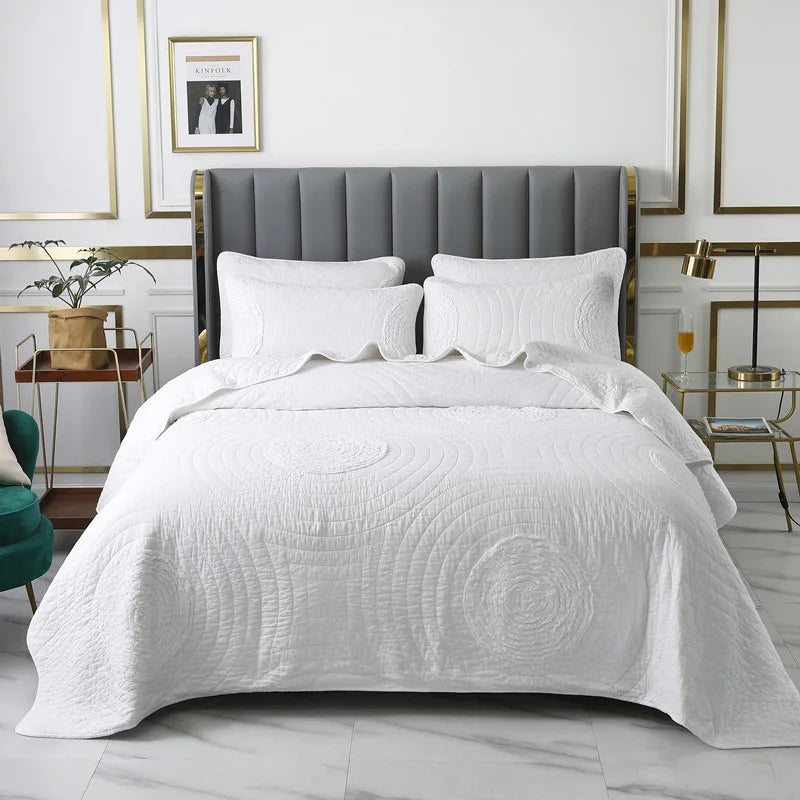 • The three-piece set includes a generously sized quilt and matching pillowcases, offering seamless, coordinated style for Queen and King beds.