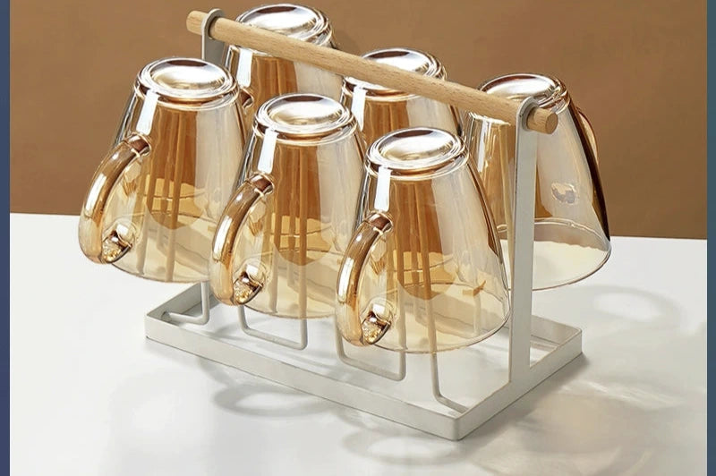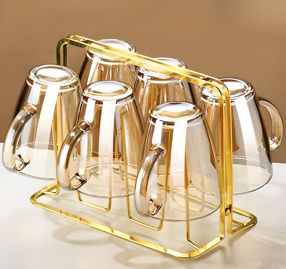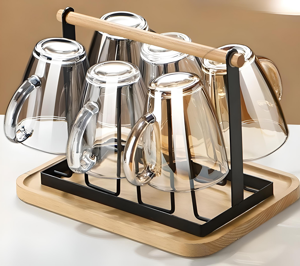 Julia M Lifestyles 380ml Drop-Resistant Tempered Glass Mug - [Clear] 380ml Tempered Fall Resistant 6 + Black Rack + Tray❤(Upgraded Tempered Tidy Storage) is backordered and will ship as soon as it is back in stock.