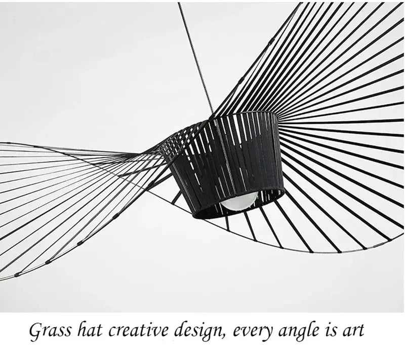 Modern French Designer Straw Hat Chandelier with LED Lighting