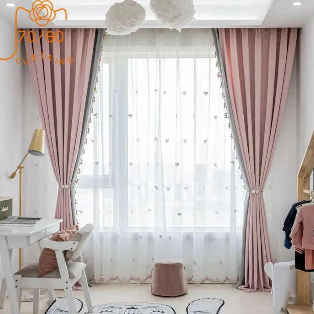 The solution is Girls' Pink Gray Patchwork Pony Lace Thickened Chenille Curtains. With these curtains, you can give your girl's living room, bedroom, or balcony a fresh, playful upgrade.