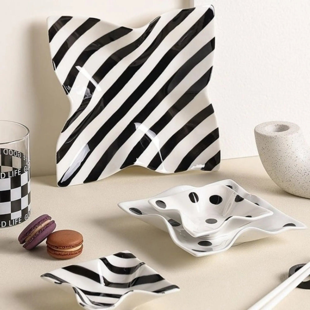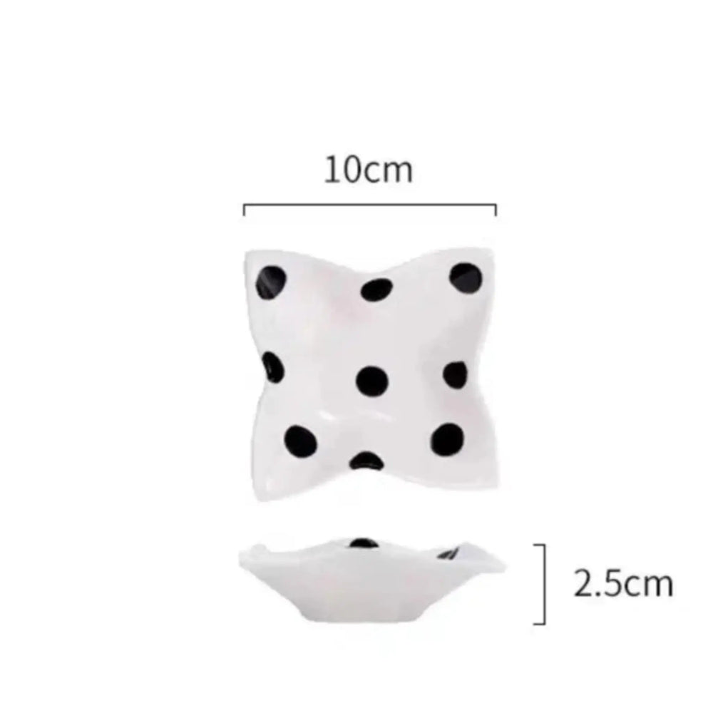 Our Hand Painted French Retro Hepburn Style Black & White Polka Dot Ceramic Plates are the solution to your tableware woes. These irregular plates offer a unique charm that blends French retro with modern artistry, upgrading any dinnerware set in a flash. Here’s how they improve your dining: