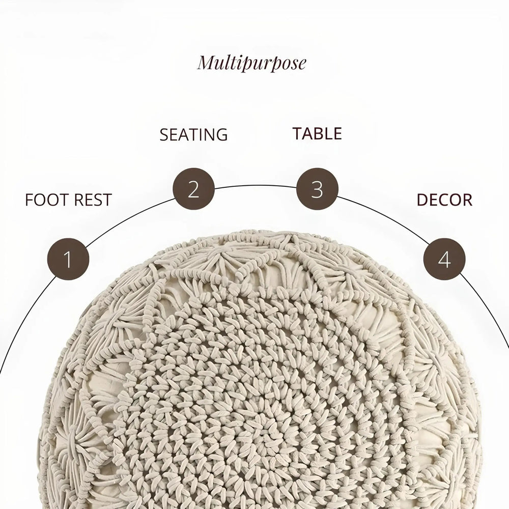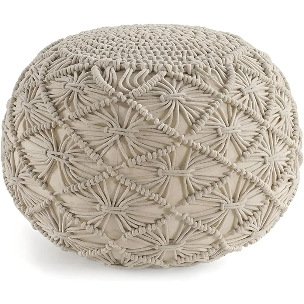 Hand-Knitted Cotton Ottoman Pouf: Modern Minimalist Foot Rest
