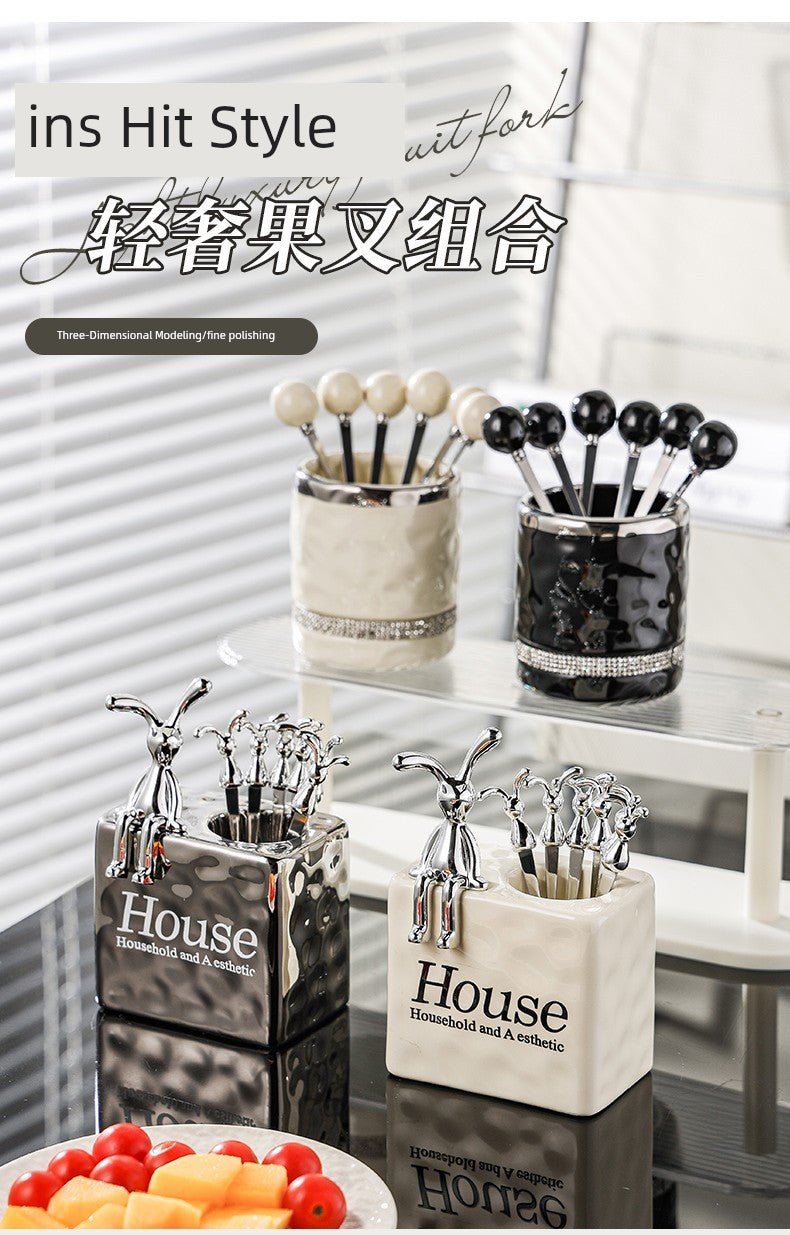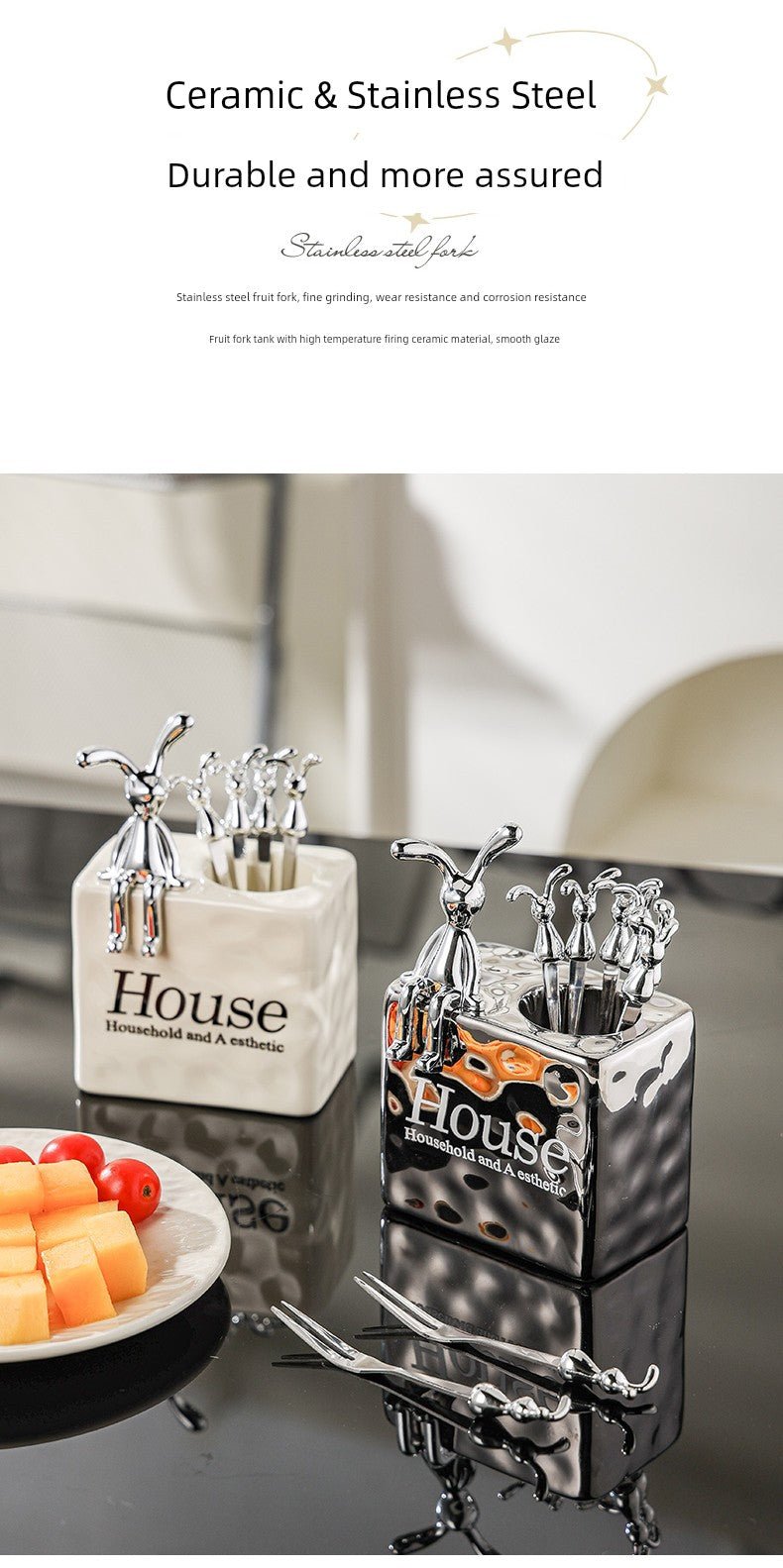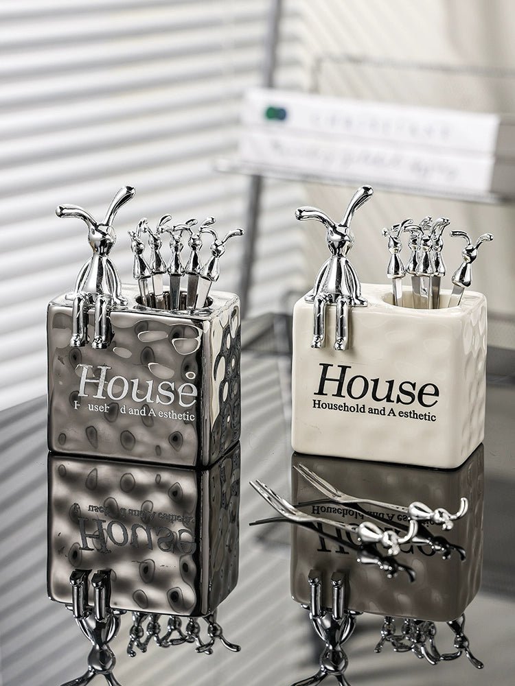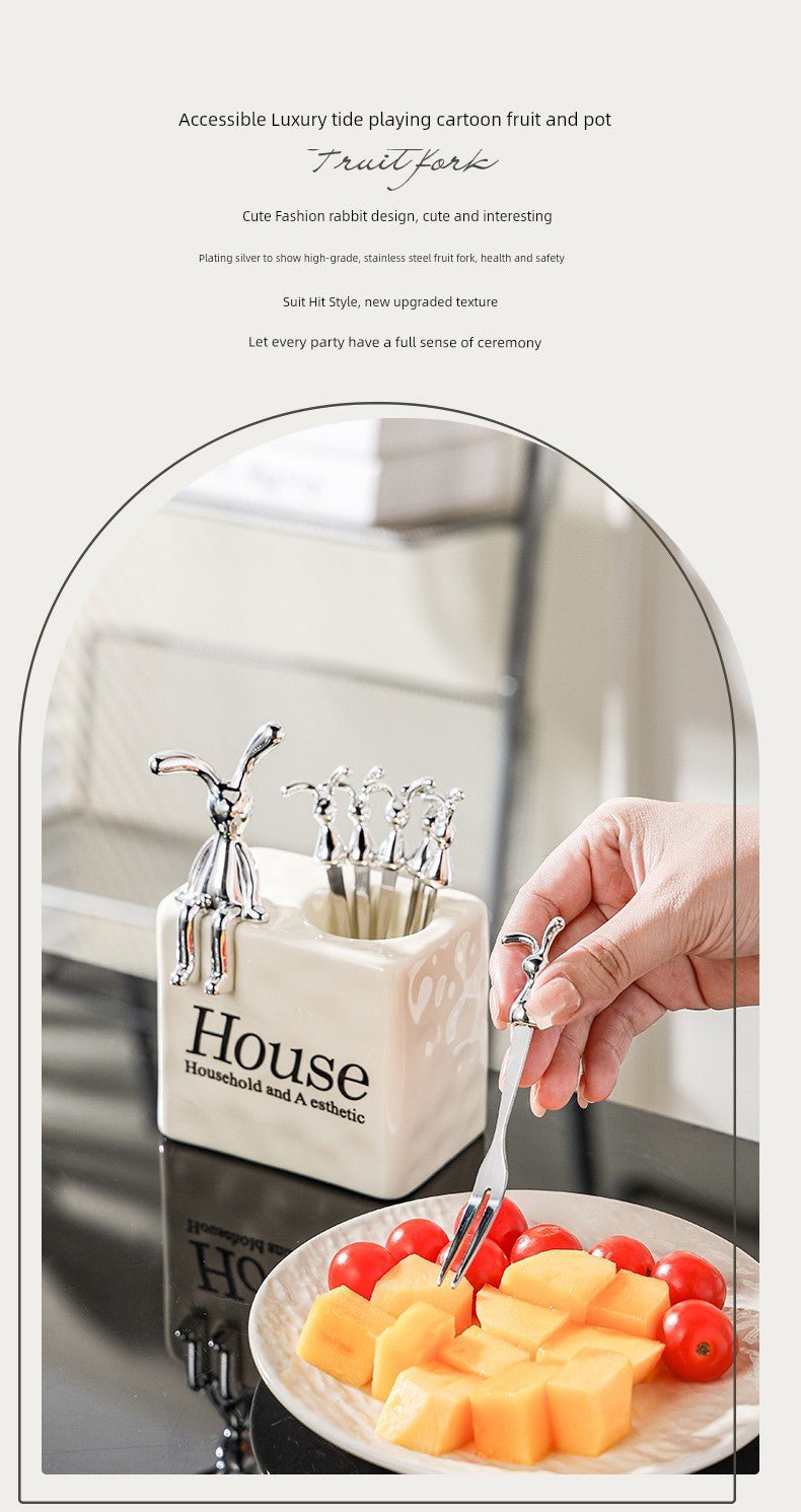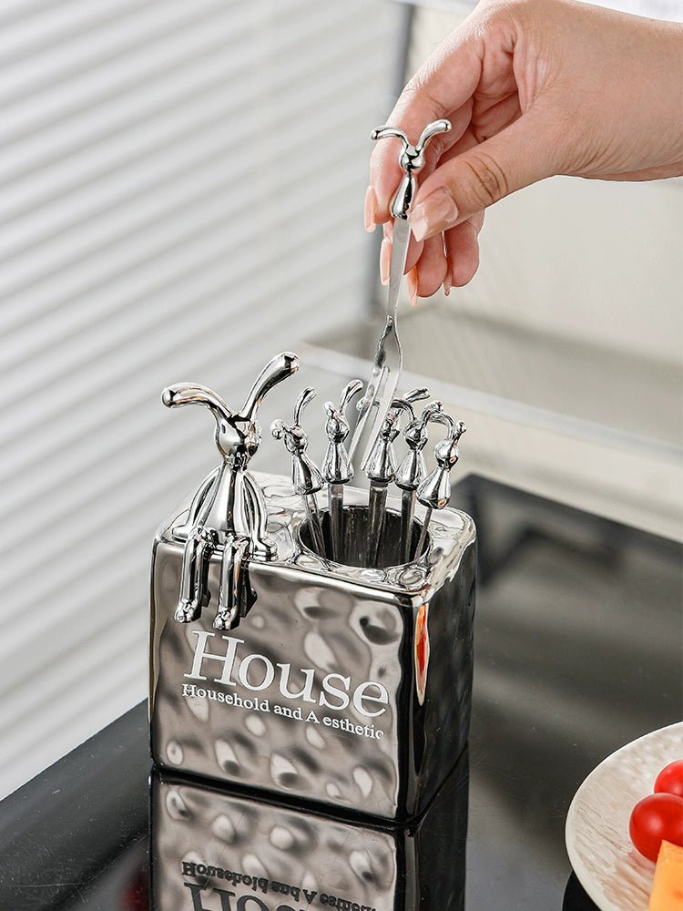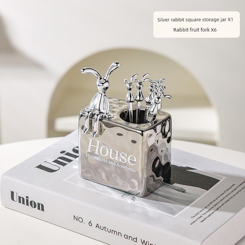 Accessible Luxury For Home Kids Ceramic Storage Tank Stainless Steel - Milk White cubic jar +6 rabbit fruit forks is backordered and will ship as soon as it is back in stock.