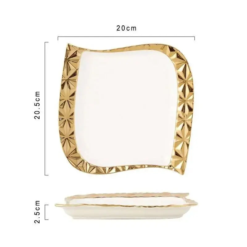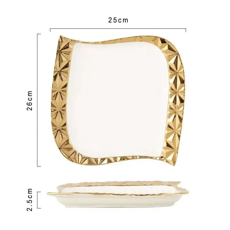 Elevate your dining experience with our Gold Stroke Ceramic Plate Set. The unique irregular design of each plate adds a modern and artistic touch that is sure to impress your guests. Made of high-quality ceramic material, these plates are not only aesthetically pleasing but also durable and long-lasting. Perfect for Western restaurants, steak dishes, or any other dining occasions, this set is a versatile addition to your dinnerware collection. Don't settle for ordinary plates, upgrade to our Gold Stroke Ceramic Plate Set and make every meal a special occasion.