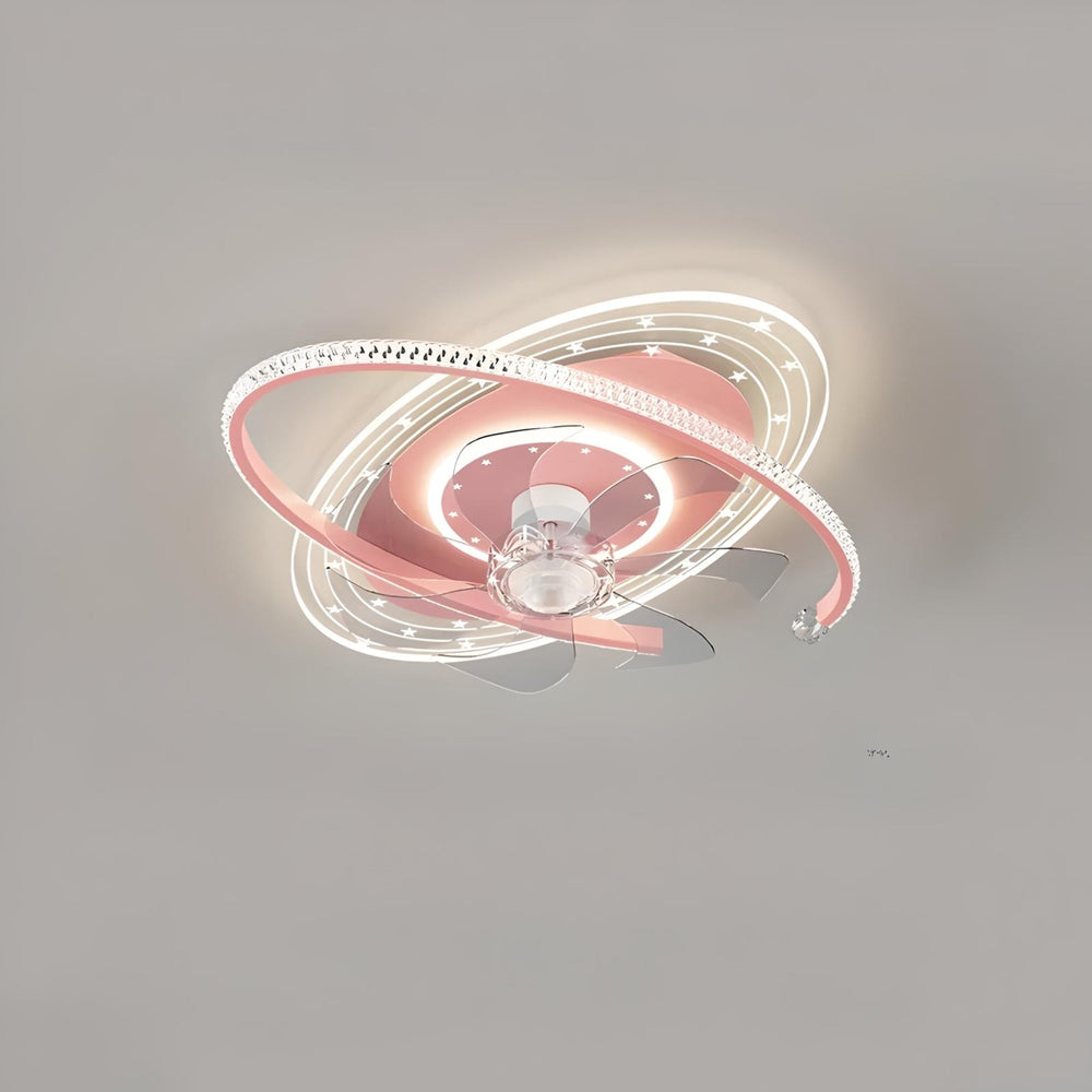 Kids Pink Ceiling Fan with Light and Starry Design for Children's Rooms