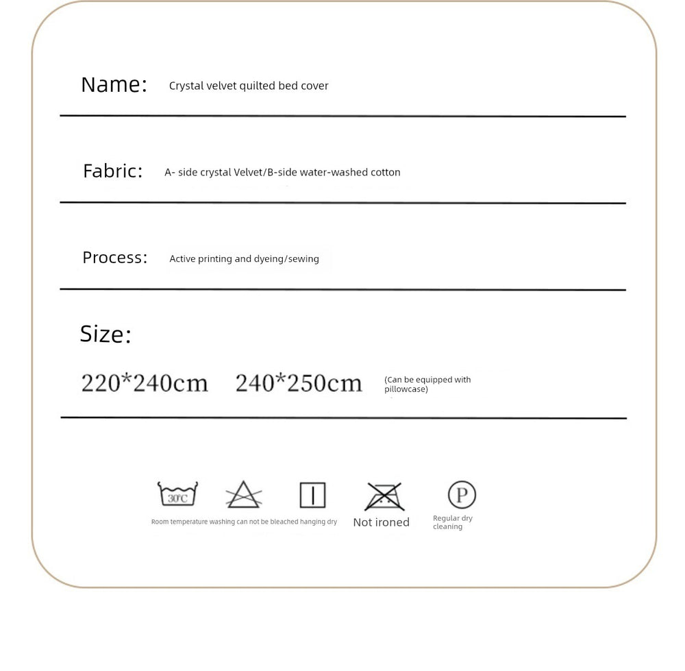 Introducing our exquisite Fall and Winter Fleece-lined Quilted Bed Cover Three-Piece Set, designed to elevate your sleep experience. Crafted from 100% polyester, this luxurious bedding features a beautiful geometric pattern and a plush crystal velvet finish.