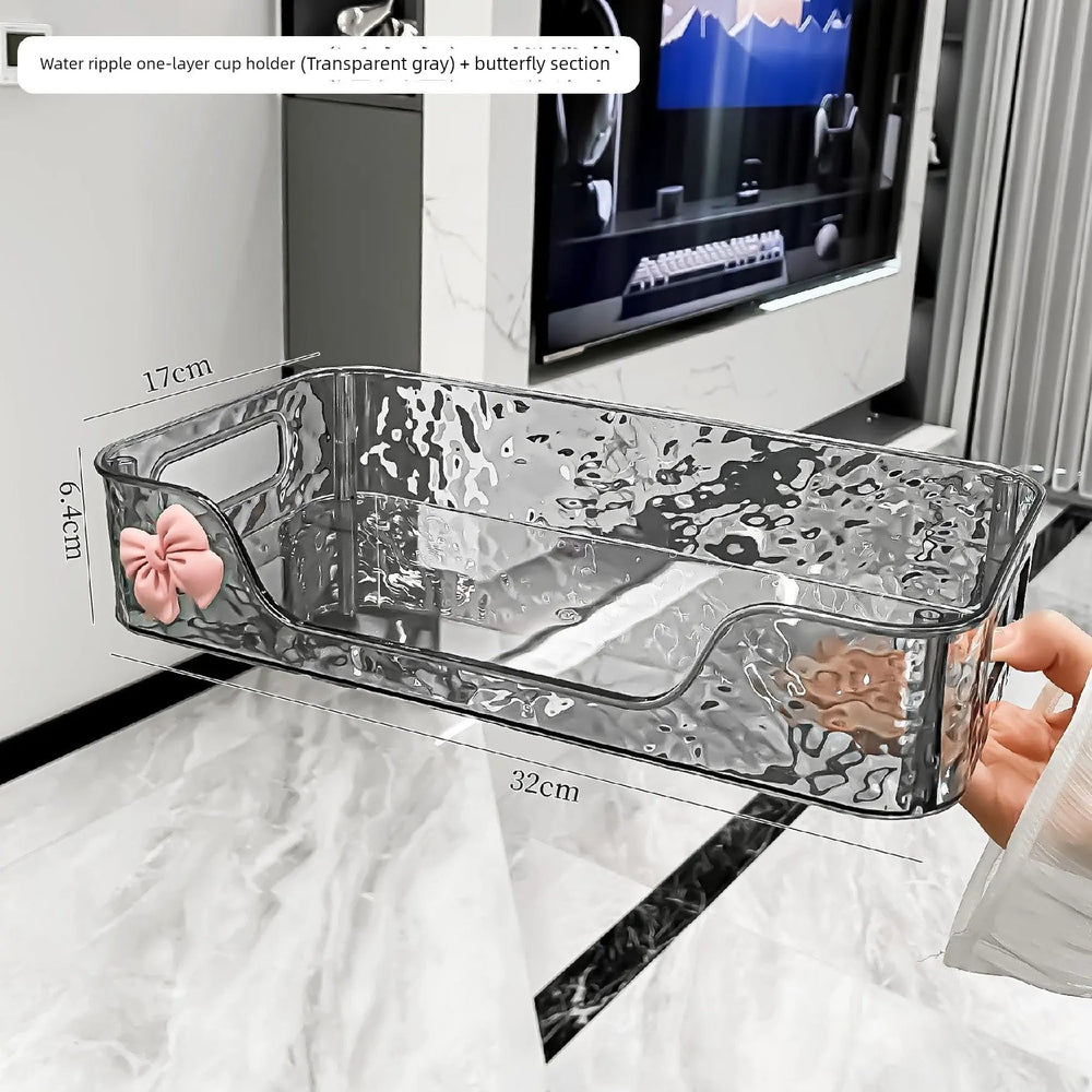 Bathroom Organizer Shelf Home Kitchen Acryl Storage Rack Large Capacity Skincare Cosmetic Liptick Shampoo Desktop Holder - Water ripple transparent color [single layer] storage rack-gift Bows patch is backordered and will ship as soon as it is back in stock.