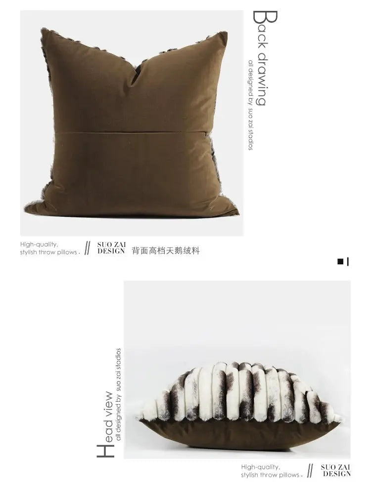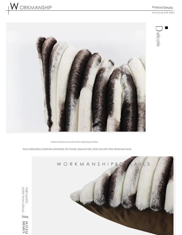 Modern Minimalist Brown Stuffed Stripes Pillow Cover Accessible Luxury Cream Living Room Sofa Bay Window Bedside Cushion Cushion Cover