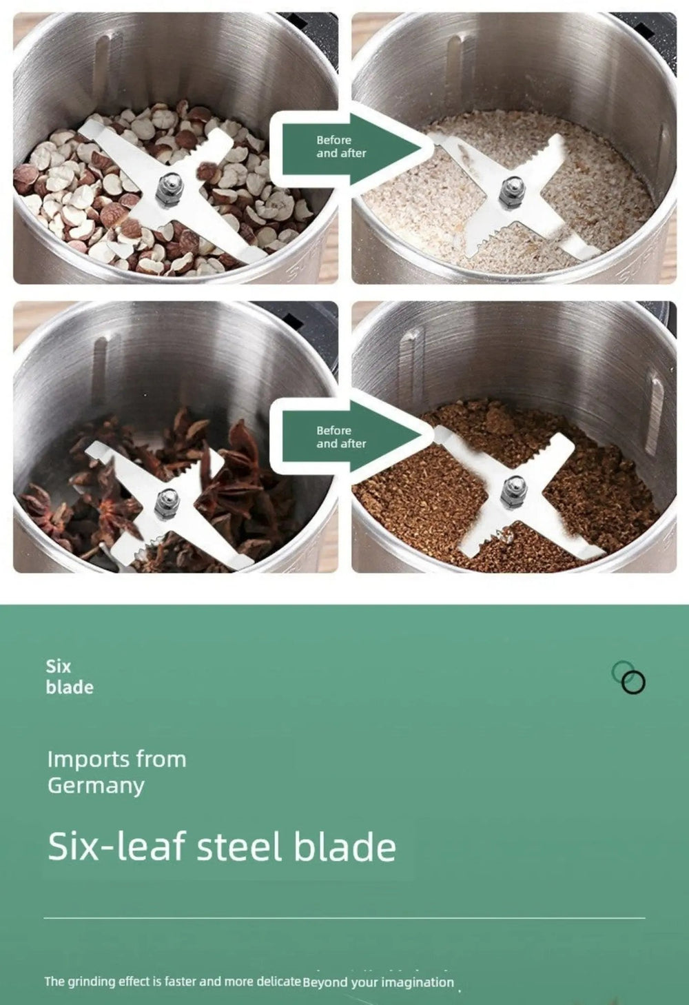 The Ultra Fine Electric Grinder110v Mill For Home Dry Grinding Ultra-Fine Electric Grinding is designed to solve these problems and empower your kitchen. This ultra fine electric grinder uses a powerful 29000 r/min motor to transform dry ingredients into a fine, even powder in seconds. With a generous 50g capacity, you can grind spices, coffee beans, and grains effortlessly for immediate use or storage. Its 100-240V voltage compatibility ensures safe and reliable performance in any home kitchen.