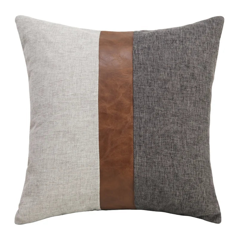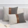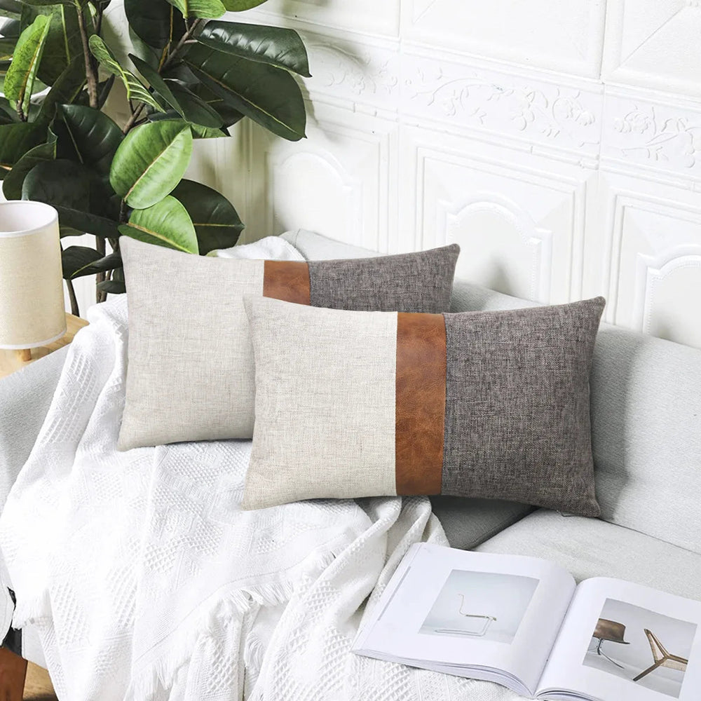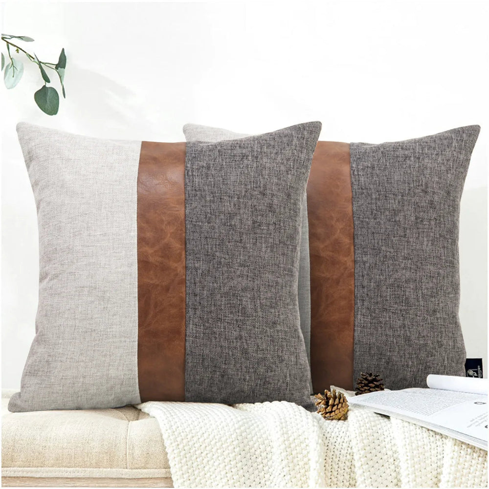 Boho Pillow Covers Throw Pillow,100% Cotton and Faux Leather Modern Decor Pillow Cases for Outdoor Home Sofa Decor