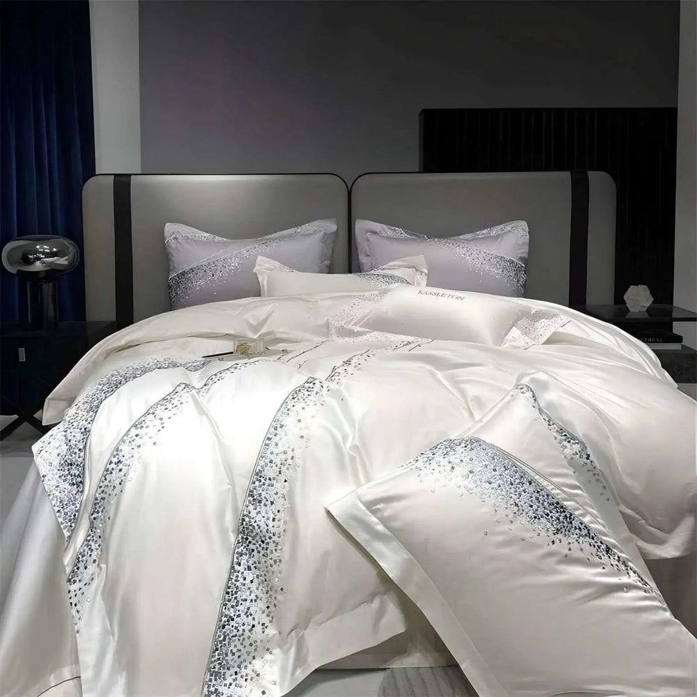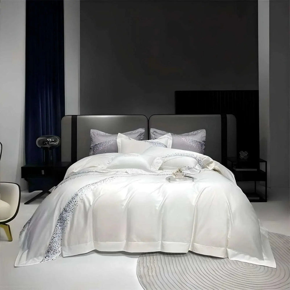 Transform your bedroom into a sanctuary of elegance with the Premium 1200TC Egyptian Cotton Art Design Bedding Set by Julia M Home & Kitchen. Crafted from the finest Egyptian cotton, this luxurious bedding set features sophisticated embroidery that adds a touch of refinement. Available in three stunning colours and various sizes, it effortlessly complements any decor while enhancing your sleeping experience. Elevate your space with this exquisite bedding set today.