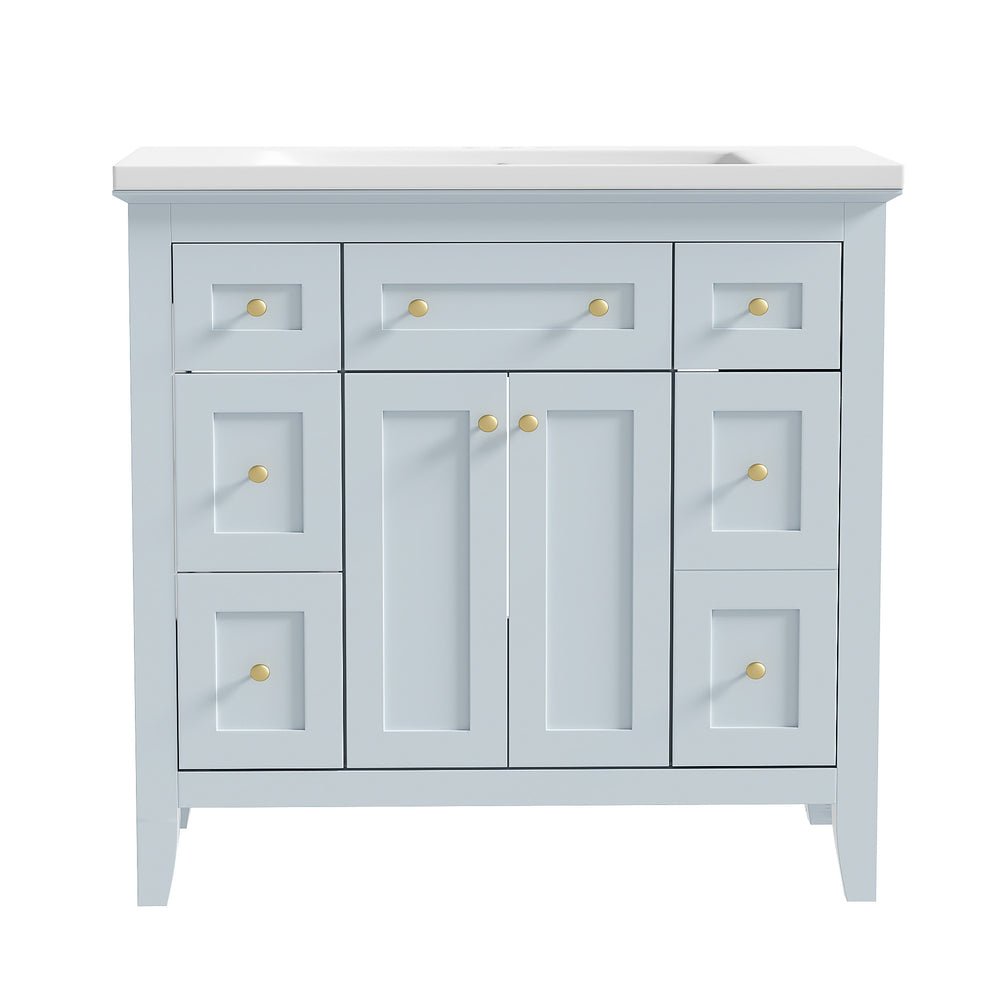 36 inch bathroom vanity with resin sink combination set with 6 drawers and 2 cabinets, storage cabinet vanity set, light blue