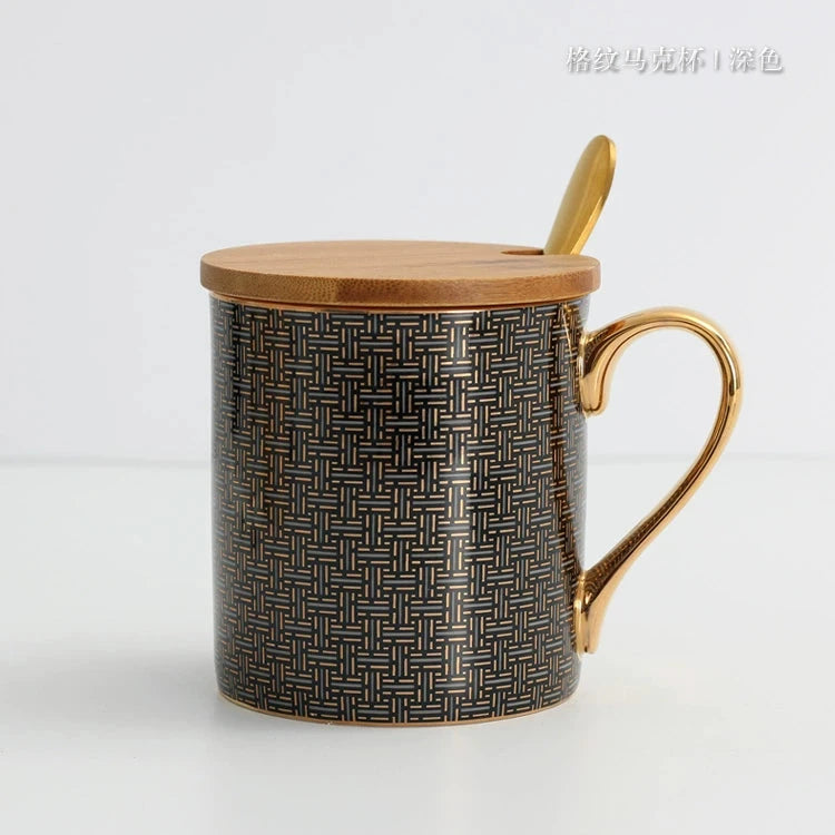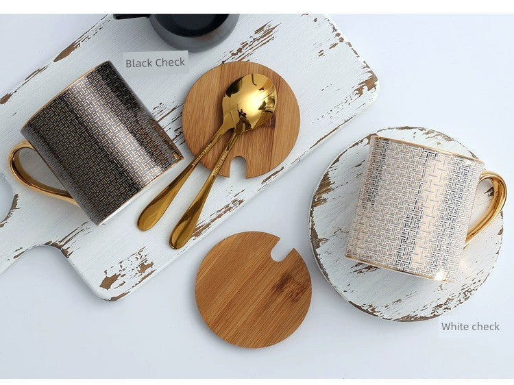 Florence Exquisite European-Style Bone China Mug with Lid and Spoon