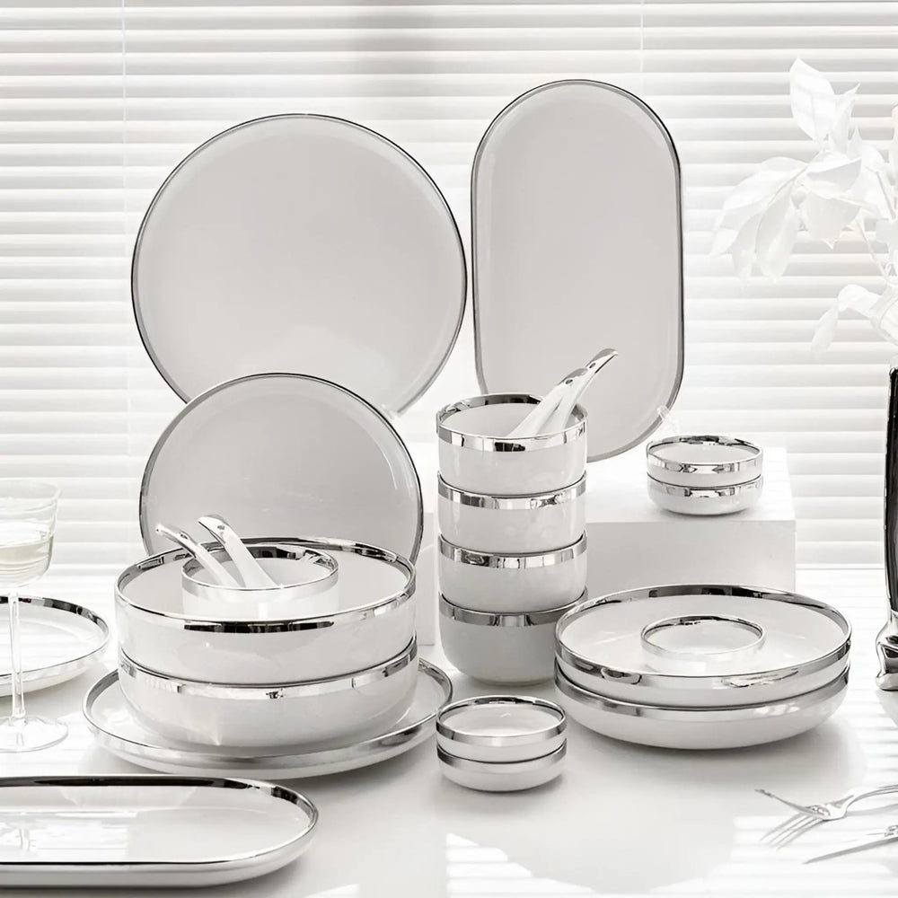 Elegant Silver-Edged Ceramic Dinner Set - Julia M LifeStyles