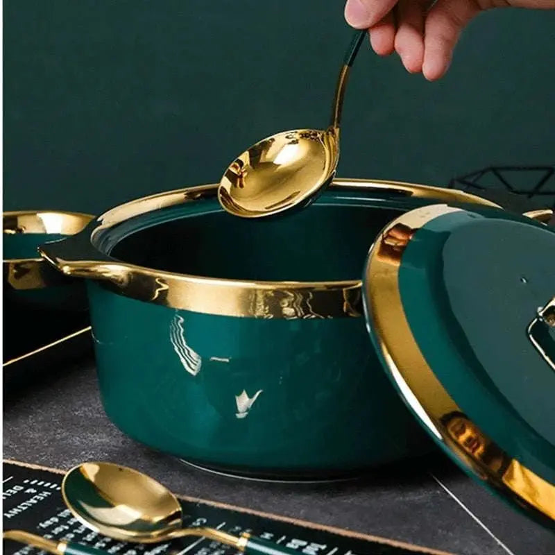 Upgrade your mealtime routine with this stunning ceramic bowl with lid. The Northern Europe style design is sure to catch the eye of anyone at the dinner table. The deep green Phnom Penh color adds a touch of elegance to your dining experience. Made from high-quality bone material, this bowl is not only durable but also adds a touch of sophistication to your kitchenware collection. The included lid makes it perfect for serving hot soups or rice dishes, keeping your food warm and fresh. Serve up a delicious meal in this stylish bowl and make mealtime the highlight of your day. Add this ceramic bowl with lid to your tableware collection today and elevate your dining experience.